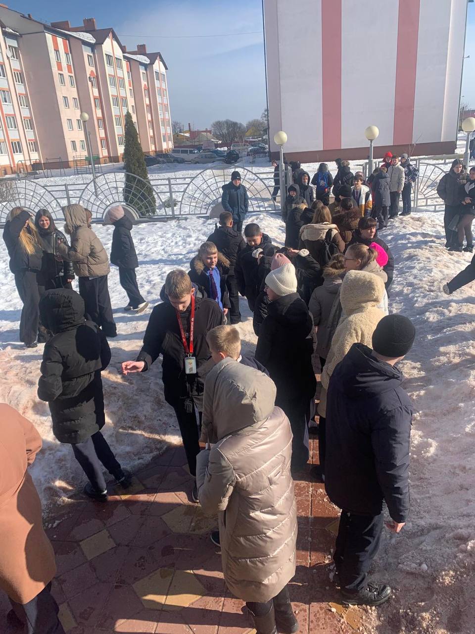 По сигналу тревоги учащиеся и трудовой коллектив гимназии организованно покинули здание, соблюдая необходимые правила безопасности.