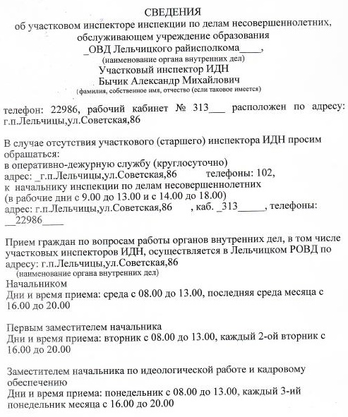 Участковый инспектор ИДН Лельчицкого РОВД г.п. Лельчицы