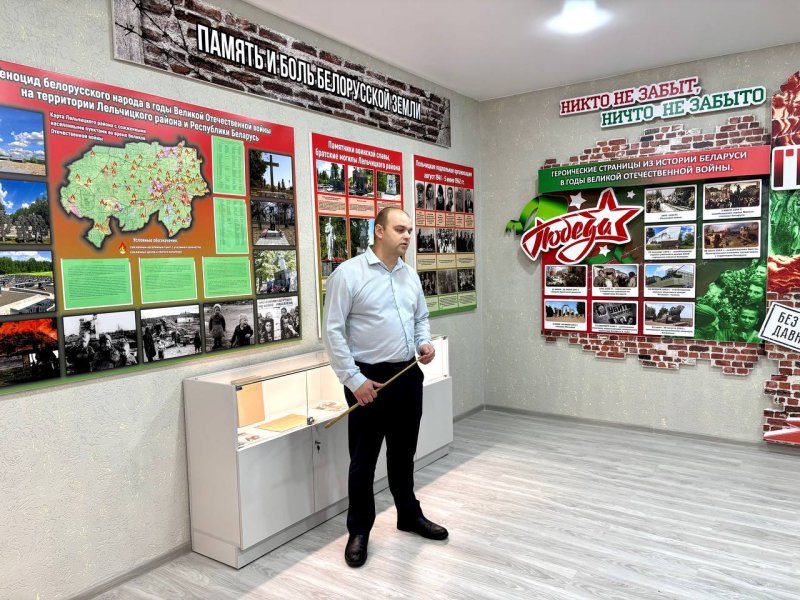 Экскурсию провел учитель гимназии, руководитель музейной комнаты Владимир Лисицкий, который ознакомил работников с архивными документами, фотоматериалами и свидетельствами, рассказывающими о геноциде белорусского народа в годы ВОВ.