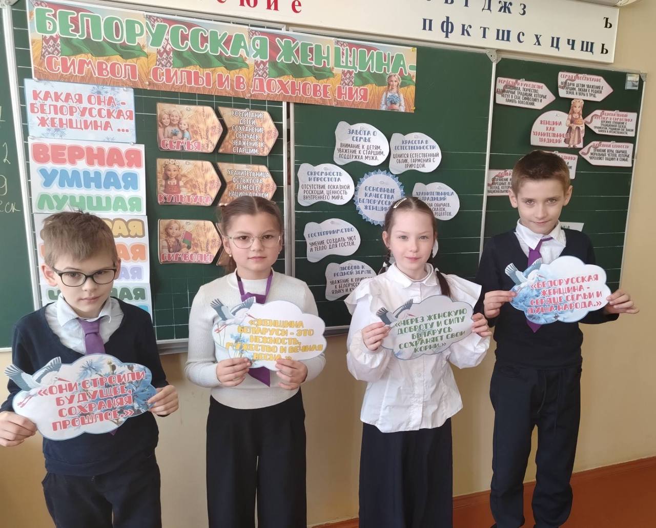 Мы говорили о многогранном образе белоруски. Это и мудрая мать, и самоотверженная труженица, и выдающийся ученый, и талантливый руководитель. Ребята узнали о судьбах великих соотечественниц — от Евфросинии Полоцкой до первой женщины-космонавта Марины Василевской. 🚀✨