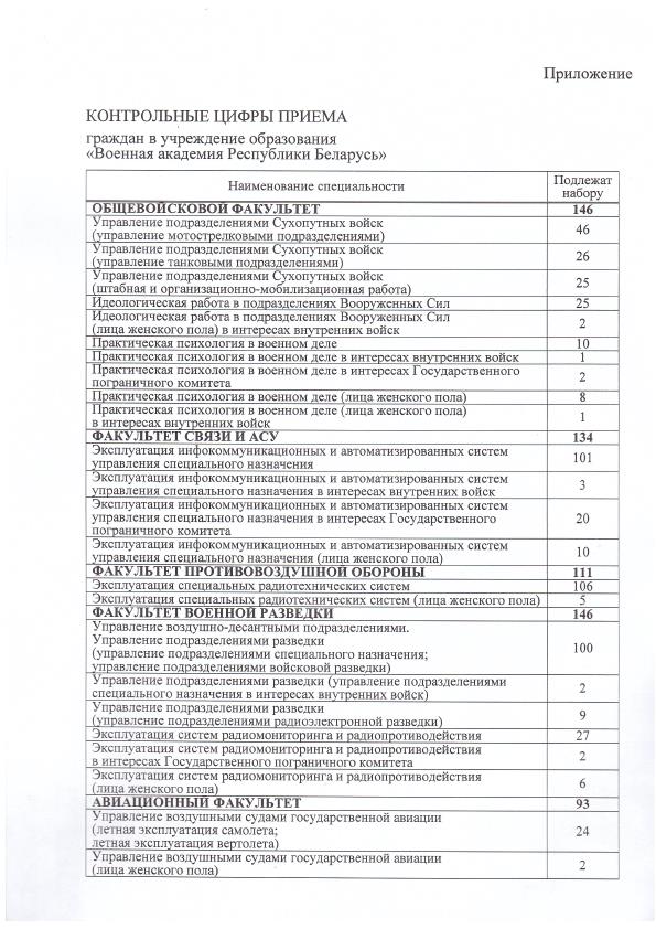 Контрольные цифры приема граждан в УО «Военная академия Республики Беларусь»